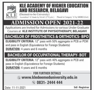 Bachelor of Prothotics & Orthotics & Bachelor of Occupational Therapy